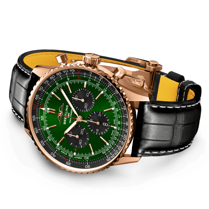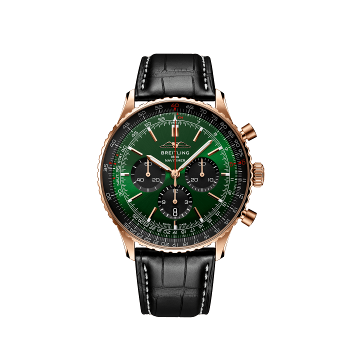 Breitling’s iconic pilot’s chronograph – for the journey. In 1952, Willy Breitling developed a wrist-worn chronograph with a circular slide rule that would allow pilots to perform all necessary flight calculations. Two years later, the Aircraft Owners and Pilots Association (AOPA) announced the design as its official timepiece. The “navigation timer” – or Navitimer – was born. The AOPA was (and remains) the largest pilots’ club in the world, counting nearly every US aviator among its ranks. As the defacto pilot’s watch throughout the glory days of civil aviation, the Navitimer was worn by airline captains and aircraft enthusiasts. It even made its way into space on the wrist of astronaut Scott Carpenter in 1962. And it wasn’t only pilots drawn to the watch’s irrepressible aesthetic. Celebrities of the day such as Miles Davis and Serge Gainsbourg were devotees, proving that the Navitimer had style as well as function. There have been many iterations of Breitling’s icon since its debut 70 years ago, but this new Navitimer captures its most classic features, while enhancing them with modern refinements. A flattened slide rule and a domed crystal create the illusion of a sleeker profile. Alternating polished and brushed metal elements give a lustrous, yet understated finish. Most notably, new colors in shades of blue, green and copper, define the updated dial options. And if there is one update sure to spark nostalgia, it’s the return of the AOPA wings to their original position at 12 o’clock. For 70 years, Breitling’s original pilot’s watch has been beloved by aviators and tastemakers in equal measure. Worn by astronauts in space and the biggest stars on earth, it is Breitling’s most iconic timepiece and one of the most recognizable watches of all time.